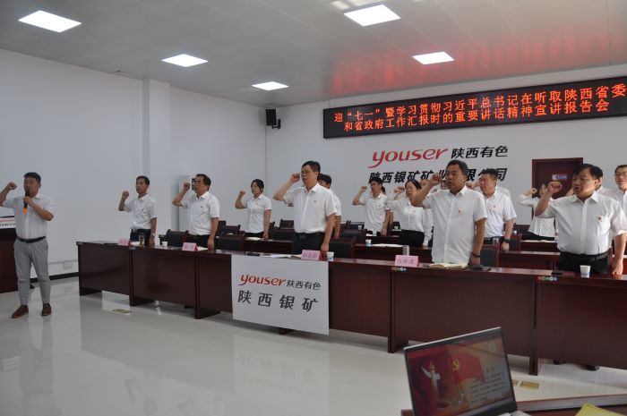 6月30日,陜西銀礦黨委舉行迎“七一”暨學(xué)習(xí)貫徹習(xí)近平總書記在聽取陜西省委和省政府工作匯報(bào)時(shí)的重要講話精神宣講報(bào)告會(huì)。報(bào)告會(huì)邀請(qǐng)陜西省委理論講師團(tuán)成員方欣教授作專題宣講。會(huì)議以“現(xiàn)場+視頻”形式召開,報(bào)告會(huì)前,全體黨員合唱《義勇軍進(jìn)行曲》,面對(duì)黨旗,預(yù)備黨員入黨宣誓,與會(huì)黨員重溫入黨誓詞。