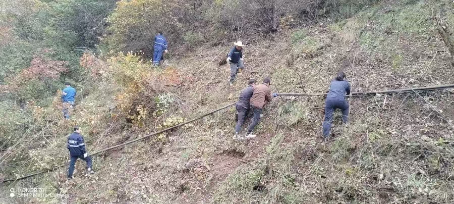 歷經(jīng)四個多小時的連續(xù)奮戰(zhàn),全體人員汗透衣衫,清除了近800m2的樹木荊棘,將完全被遮蔽的纜線通道徹底打通,并把光纜提升至安全高度,成功清除了這只“施工攔路虎”。
