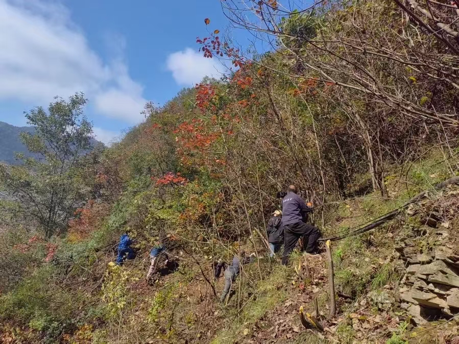 險情即命令,行動顯擔當。面對復雜地形與植被纏繞的“攔路虎”,金米黨支部想方設(shè)法、果斷出擊,由黨員帶頭,組織全體在崗人員趕赴現(xiàn)場開展義務(wù)整治。他們自帶砍柴刀、繩索等工具,對嚴重影響施工安全的荊棘雜草進行全面清理。